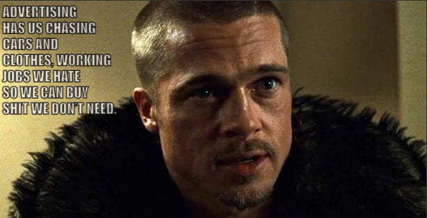 All this endless scrolling, engineered hooks, and the false sense of choice - it reminds me of a certain someone - “Tyler Durden” and he was right…