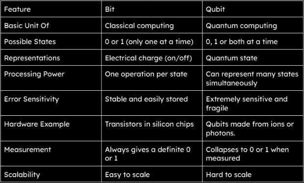 “On the other hand, a qubit (short for quantum bit) is the quantum version of a bit.