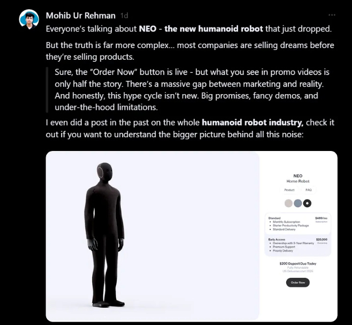 Look at NEO the humanoid robot praised like a digital messiah, but under the hood, it’s still limited. The same goes for the gaming industry - promises first, reality later.