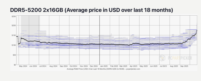 Mainstream tech outlets have shared that enthusiasts are seeing RAM costs two to four times higher than a few months earlier.
